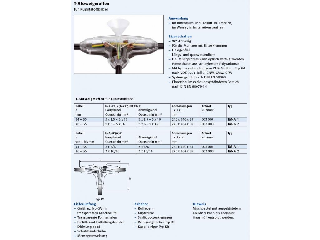 › ELEKTROINSTALAČNÍ MATERIÁL › Odbočná kabelová spojka zalévací gelové › Kabelová zalévací gelová spojka odbočná TM-A 2